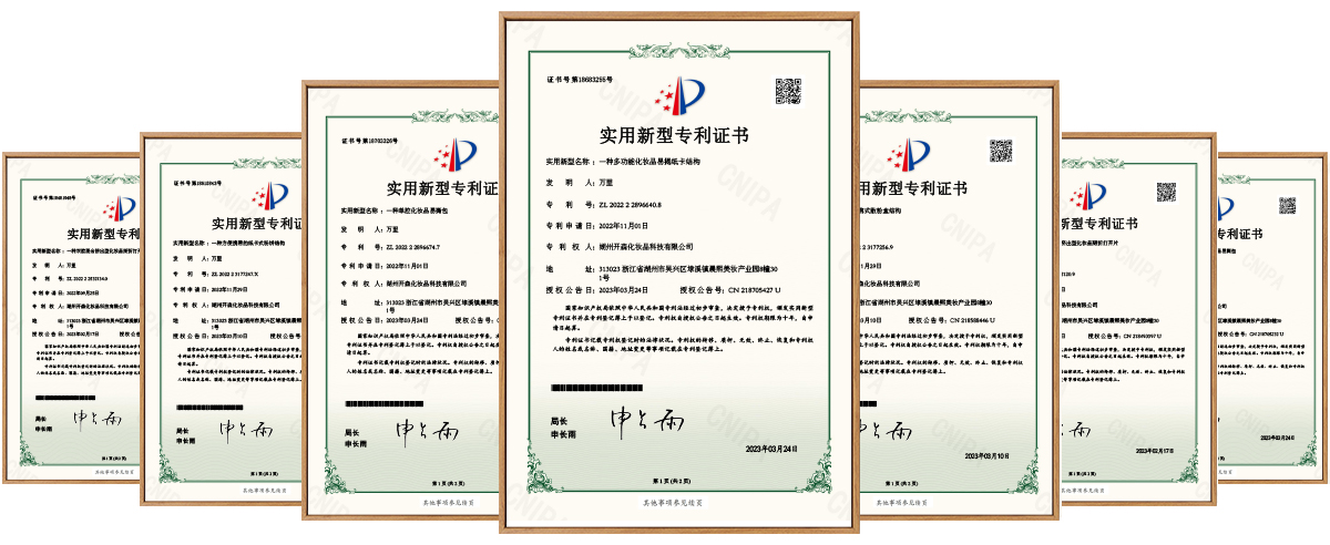 經(jīng)過多年的研發(fā)創(chuàng)新,湖州開森現(xiàn)擁有【一種便攜式散粉盒結(jié)構(gòu)】、【一種多功能化妝品易揭紙卡結(jié)構(gòu)】、【一種方便攜帶的紙卡式粉餅結(jié)構(gòu)】、【一種雙腔混合擠出型化妝品易撕包】、【一種雙腔掰折擠出型化妝品掰折打開片】、【一種單腔掰折擠出型化妝品掰折打開片證書】等多種專利,可以根據(jù)客戶的不同需求,進(jìn)行深度創(chuàng)新,滿足市場和產(chǎn)品日益更新的需求。